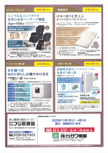 11/1(土)~11/3(月)の3日間はメーカー販売員が常駐しております。(展示は4日間)