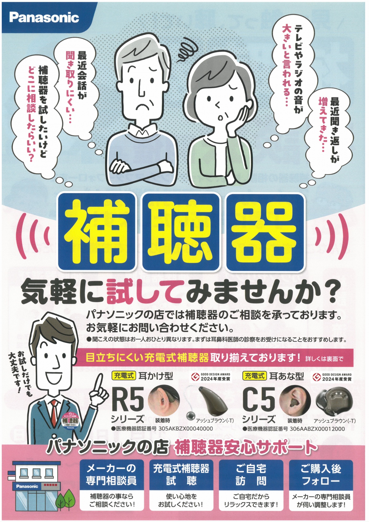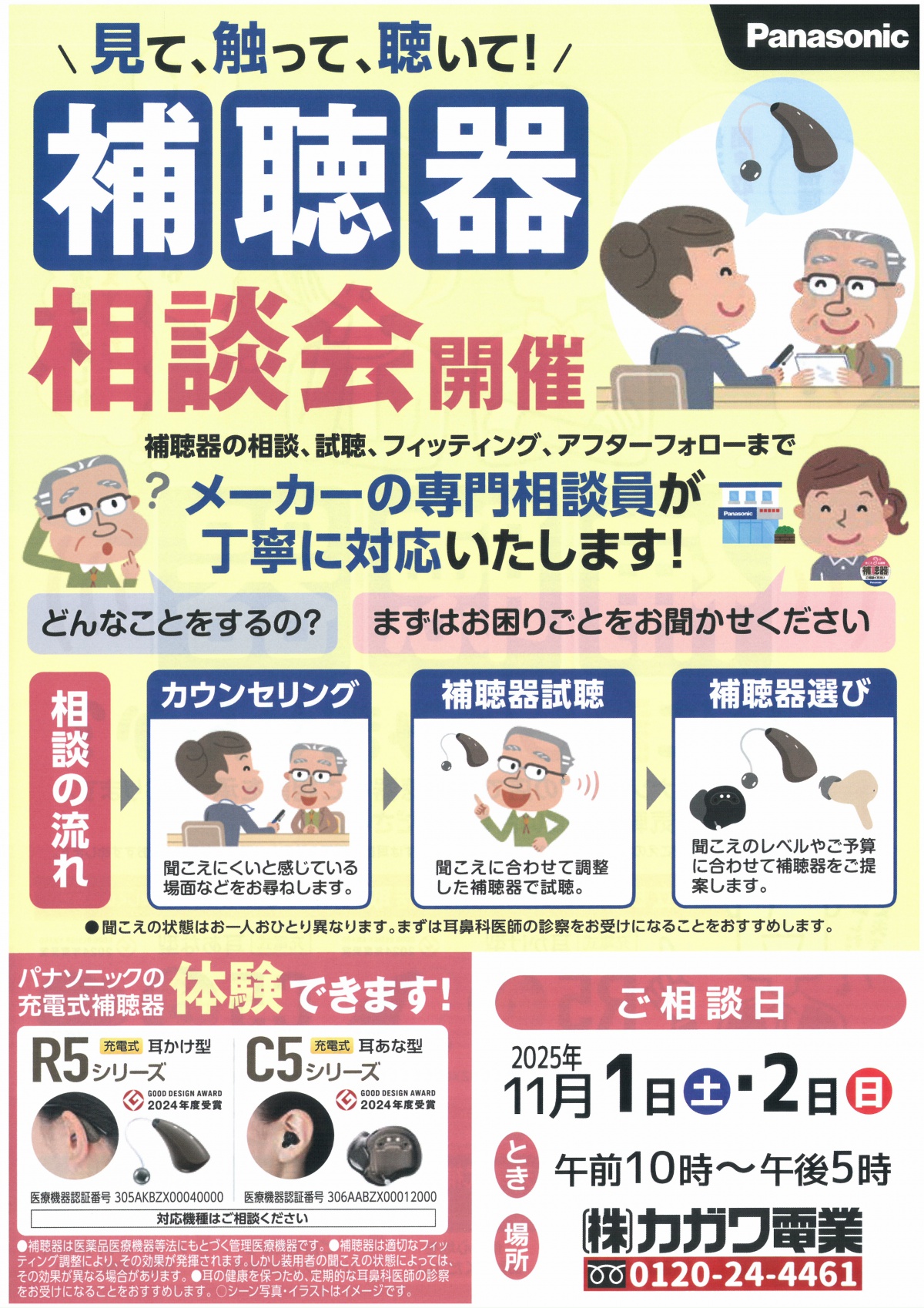 補聴器の無料相談会を行います。Panasonic専門相談員が「聞こえ」の困りごとに丁寧に対応します。